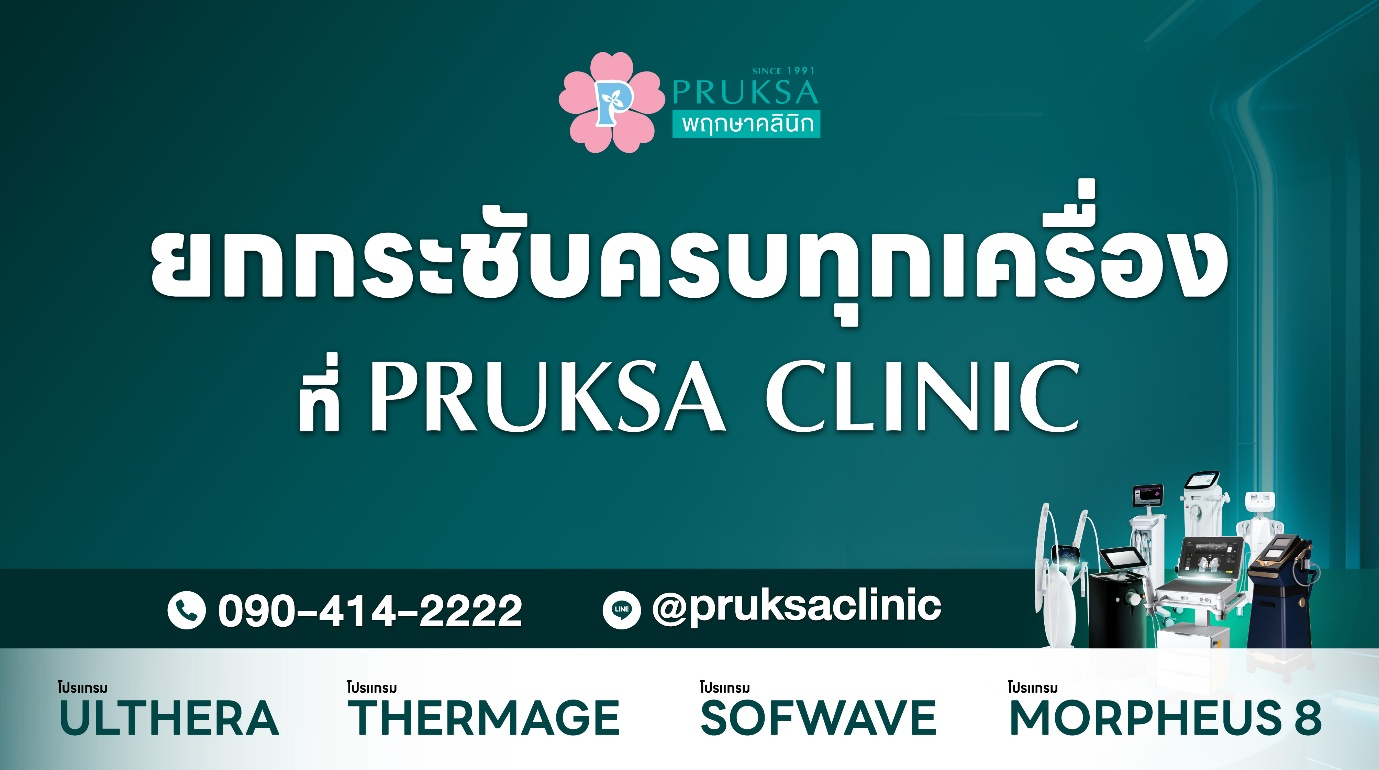 Over the past 33 years, Pruksa Clinic has focused on selecting advanced, efficient, and safe world-class technology that meets international standards to cater to every need of our customers, whether it is skin tightening, facial reshaping, wrinkle reduction, acne treatment, or skin brightening, to achieve the best and most valuable results according to the philosophy of Dr. Settakarn Attakornpan, who once said, “Considering the benefit of the patient is the heart of a doctor.”
